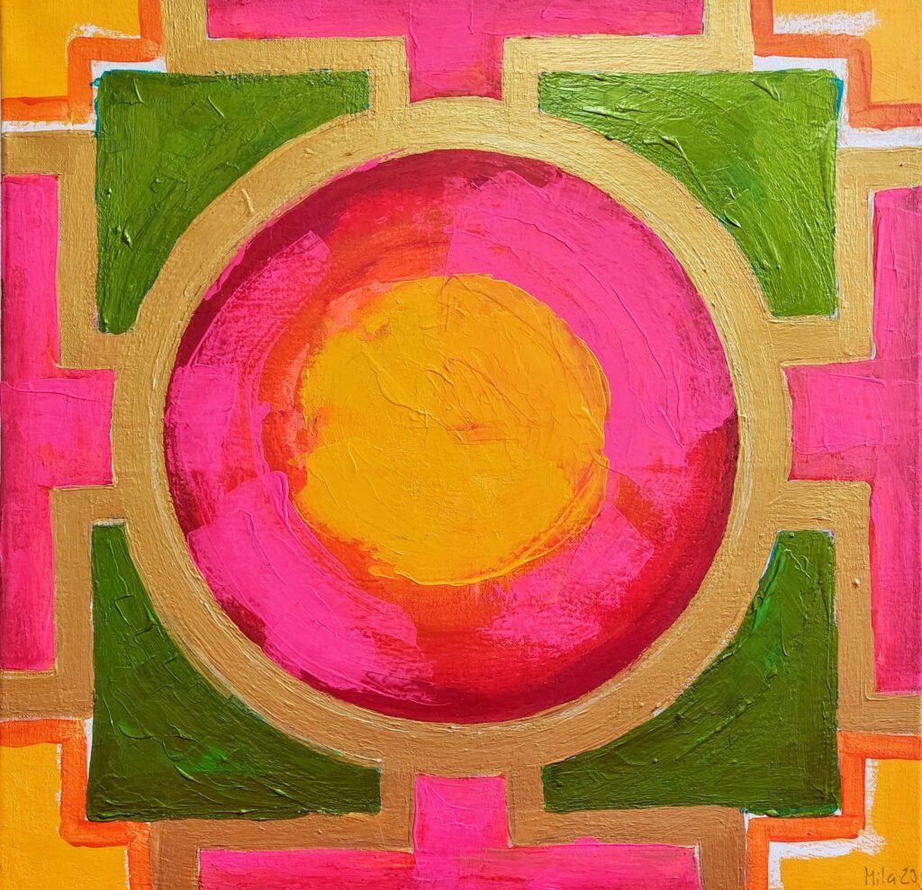 Inspiriert von den wunderbaren Kulturen dieser Welt, und mit grosser Liebe & Hingabe produziere ich seit 2023 sogenannte Yantra Bilder.